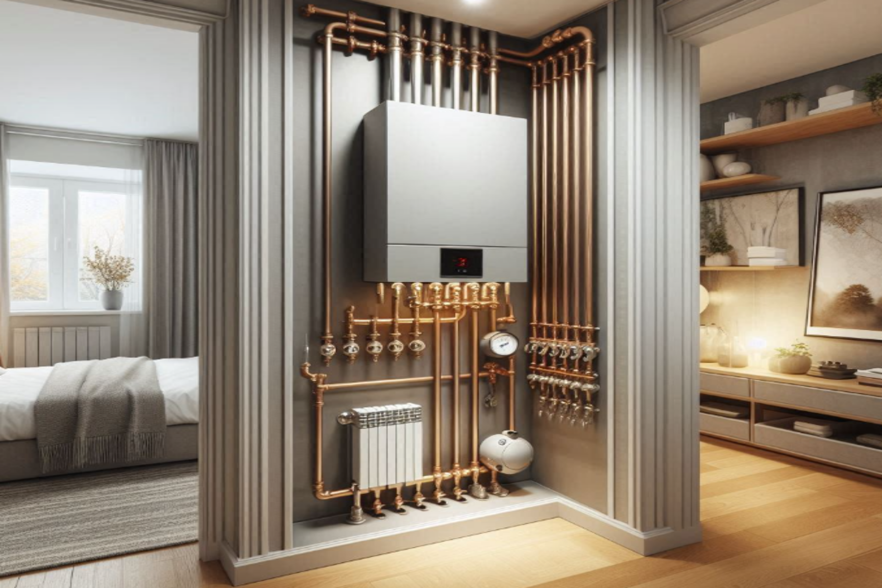 중앙난방은 단지 내 대형 보일러에서 모든 세대에 난방을 공급합니다.