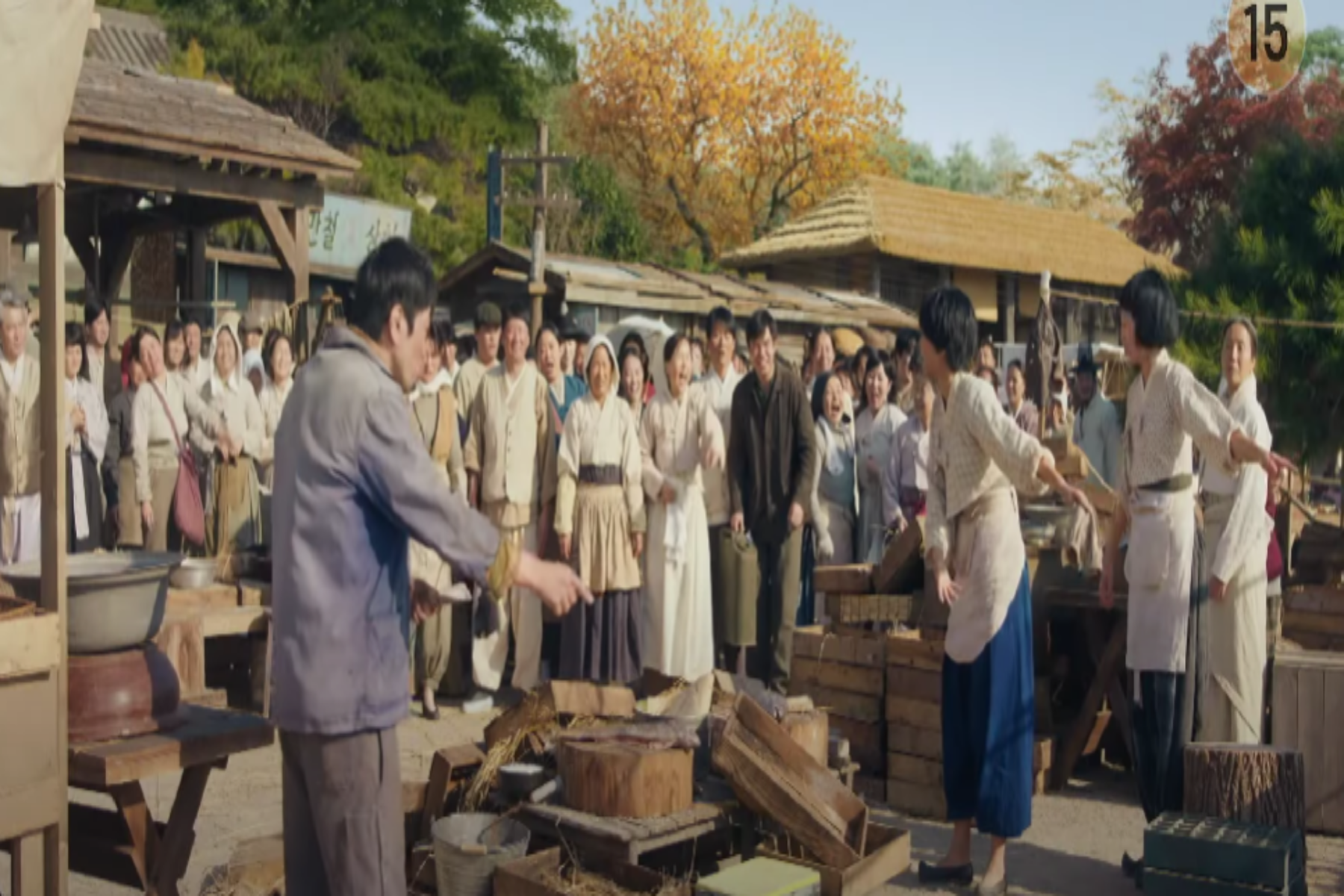 시장에 찾아와 자릿세를 내라고 위협하는 창호 일당에게, 정년은 즉석에서 판소리 '남원산성'을 열창하며 상황을 진정시키고, 그들의 기를 꺾습니다. 정년의 노래에 모든 상인들과 창호마저 매료되고, 결국 창호는 아무 말 없이 자리를 떠납니다. 이 장면에서 정년의 소리에 사로잡힌 문옥경(정은채)과 서혜랑(김윤혜)이 이를 목격하며, 정년의 뛰어난 재능을 눈여겨보게 됩니다. 문옥경은 정년을 국극 공연에 초대하며 그녀를 국극 세계로 이끌려는 마음을 품습니다.