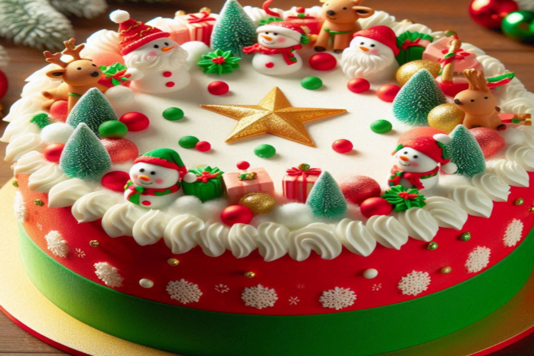 신선한 딸기를 듬뿍 사용한 화이트 케이크로, 크리스마스 테이블에 빠질 수 없는 클래식 아이템!